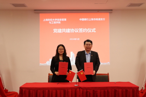 吴大为行长与王淑范书记分别代表中国银行杨浦支行党委和上海财经大学信息管理与工程学院党委签署了党建联建协议。