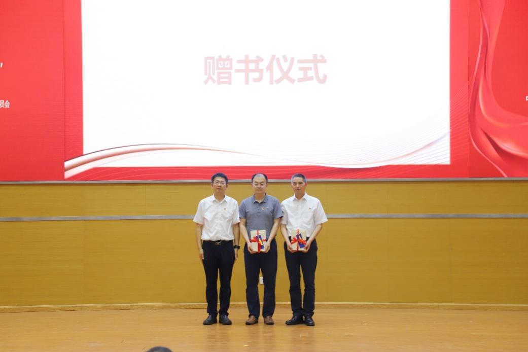 讲座结束后,何鹏程向商学院党委和机关党委赠送关于加强党的纪律建设的学习资料。商学院党委副书记、纪委书记王体和机关党委纪检委员刘艳辉作为代表接受赠书。