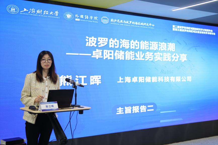 上海卓阳储能科技有限公司大项目融资经理熊江晖作题为《波罗的海的能源浪潮》的发言,分析三国电力系统重组带来的储能市场机遇与严格安全环保要求,强调中国光伏与储能企业走向海外需以合规和信任为基础,采用“小而精”、本地化策略,并通过技术创新与绿色发展理念建立长期稳健的合作关系。