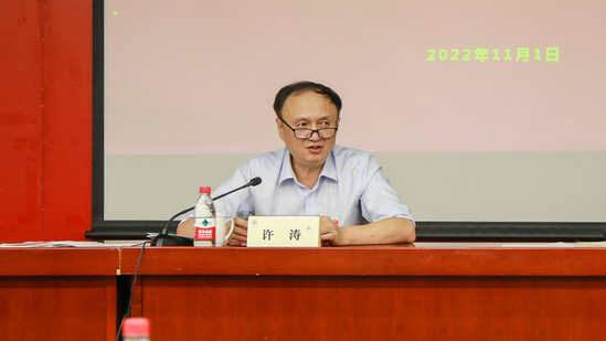 许涛强调,校内各级党组织要切实负起领导责任,着力抓好落实,迅速兴起学习宣传贯彻党的二十大精神的热潮。一是要扎实推进二十大精神的学习宣传。学校各级党组织要认真传达学习党的二十大精神,各级党员领导干部要率先学习,以上率下,注重研读原文,原原本本学习。要做到理论学习中心组学习研讨、党支部学习研讨的全覆盖。各级党的书记和党员干部要带头学、带头讲,要充分运用学校现有的品牌活动平台,广泛开展“书记备课会、书记下午茶、书记讲党课、书记面对面”等活动,在疫情防控形势允许的情况下,继续开展“书记手牵手”和“走进系列”活动;开展面向全体党员、师生开展多形式、分层次、全覆盖的专题学习,全面准确将党的二十大精神融入思政课教学;组织开展理论研究阐释,通过有组织的科研,形成一批高质量、有深度、有分量的学习宣传贯彻党的二十大精神的理论研究成果。