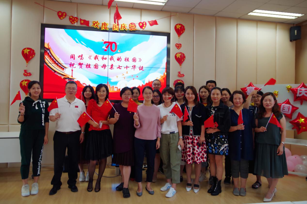 最后,全体老师现场合唱《我和我的祖国》和《二月里来》献歌祖国。自豪幸福的笑容在每一位老师脸上绽放,激扬响亮的歌声回荡在整个会场,所有会院老师挥舞国旗真情告白:“我爱你,中国!祝愿祖国繁荣昌盛!”活动在一片热烈的掌声中落下帷幕。