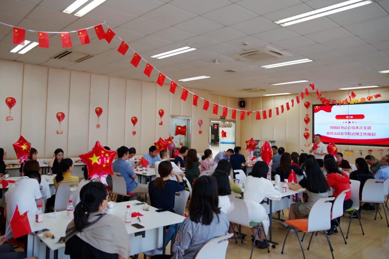 会计学院党委书记周国良首先致辞。他对全院教职员工的参与表示诚挚感谢,并就学院近期开展的系列“不忘初心·牢记使命”主题教育活动进行了整体介绍。他指出,学院的发展离不开每一位教职员工的倾情奉献,很高兴在祖国70华诞之际和大家共聚一堂,希望各位老师不忘初心,牢记使命,与国家同发展、共命运,也祝愿祖国繁荣富强、蒸蒸日上。